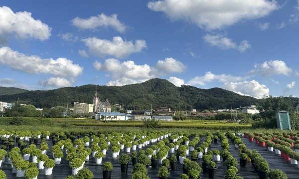 꽃밭에서 재배한 첫 국화로 가을맞이에…