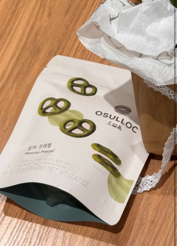 1. 오설록 말차 프레젤 1p + 구근 페이퍼백으로 구성된 상품입니다.