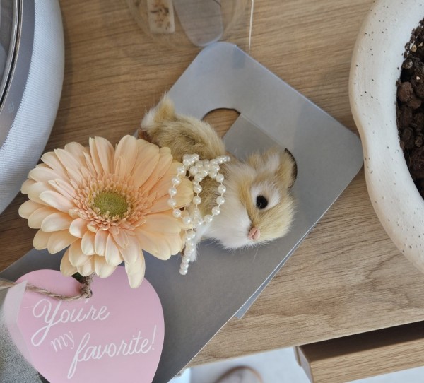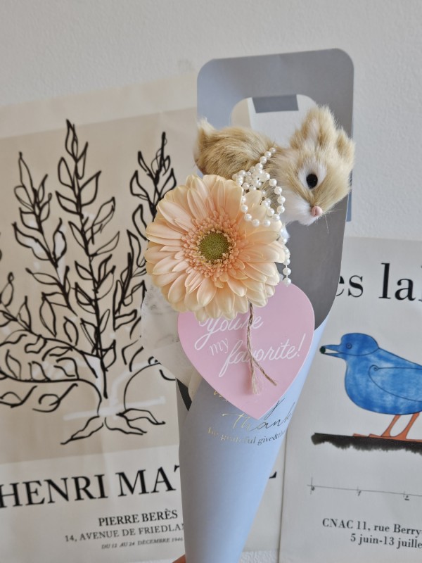 2. 아이들이 좋아하는 귀여운 핸드메이드 토끼인형과 그에 어울리는 사랑스러운 색감의 꽃을 하나의 꽃다발로 구성하였습니다.