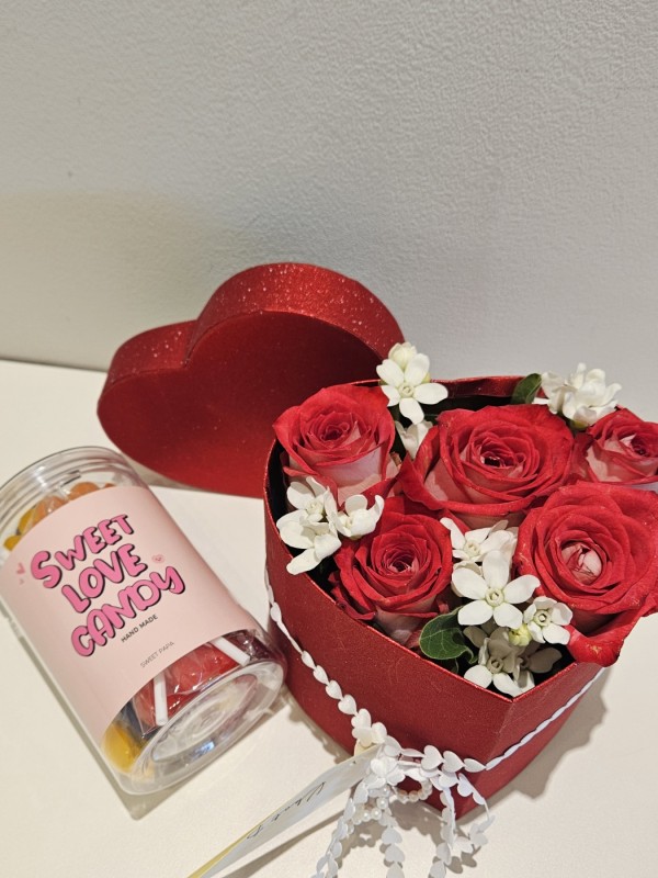 1. 그라데이션이 은은하게 번지는 장미꽃이 메인인 하트플라워박스입니다.