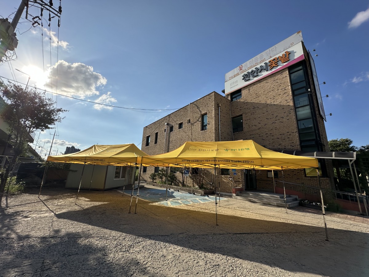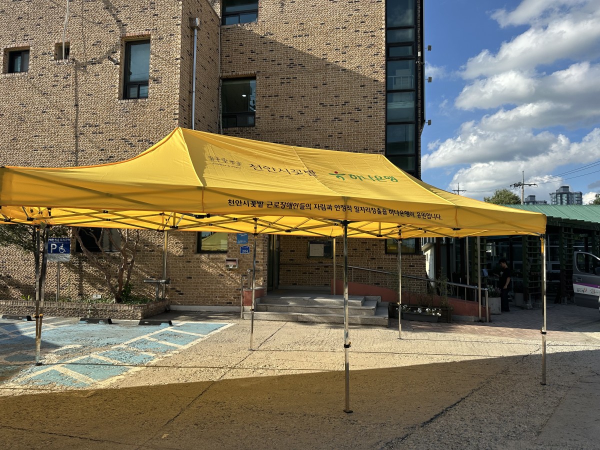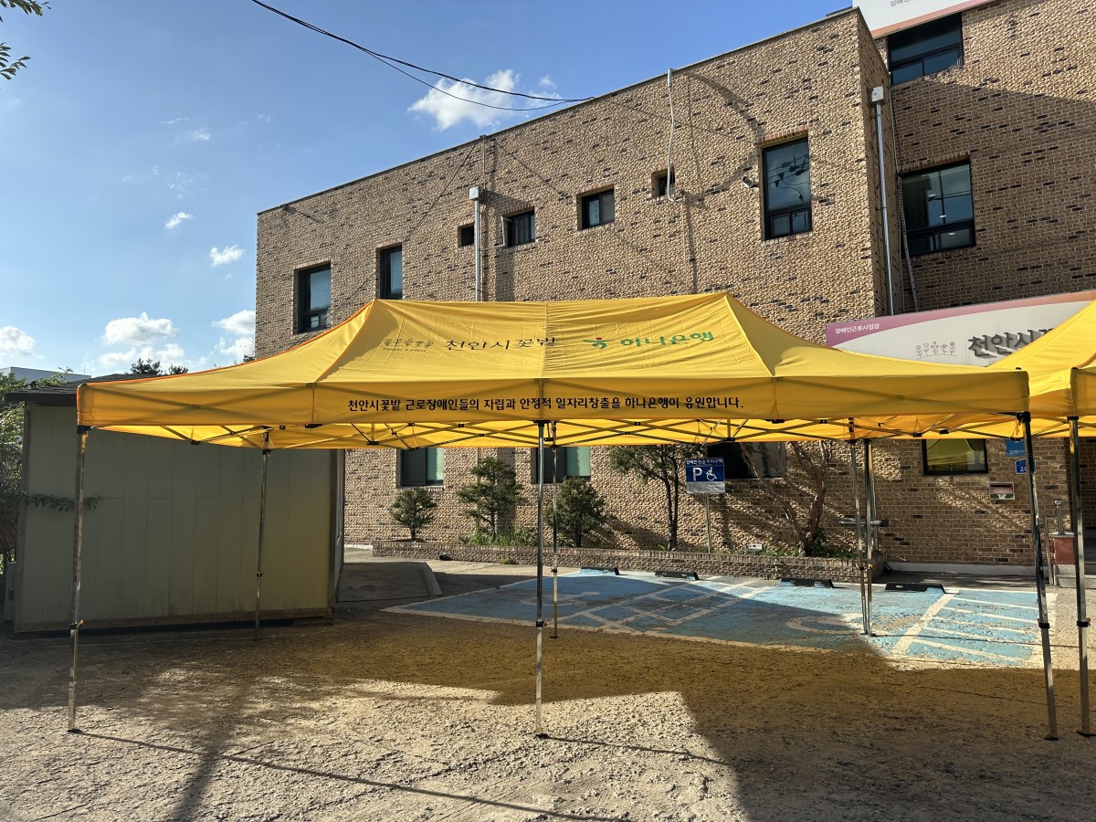 2025년 8월 26일 천안시꽃밭에서는 하나은행 천안불당지점에서 후원해주신 캐노피 천막 2대를 설치 하였습니다.
