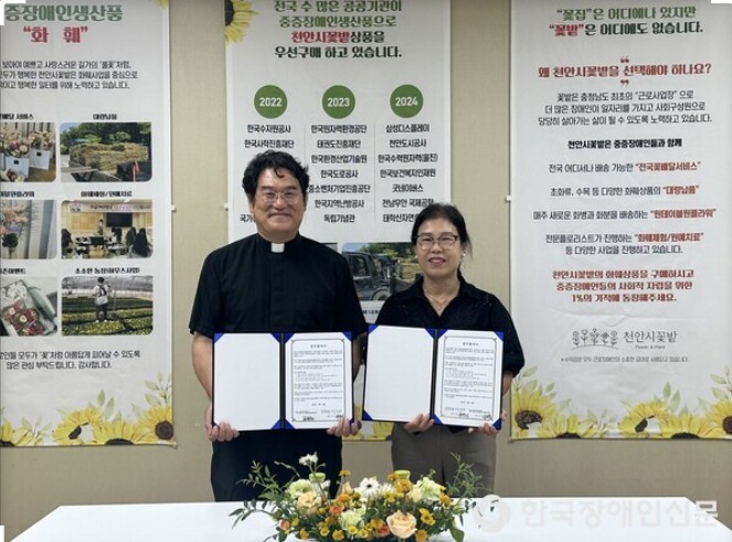 천안시꽃밭–천안시누리별장애인복지관, 장애인 일자리 창출 위한 업무협약 체결 작성일 25-08-27 12:39