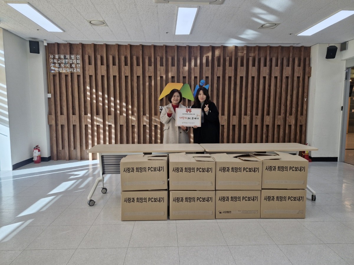 천안시종합사회복지관에 "사랑의 PC" 8대 나눔 작성일 25-12-29 08:51 본문 천안시꽃밭 유은지원장이 천안시종합사회복지관 문명희관장에게 컴퓨터 8대를 전달하고 기념촬영하고 있다. #천안시꽃밭,# 관련링크 https://www.localtoday.co.kr/news/articleView.html?idxno=405151 4회 연결 이전글풍세등대농원에서 천안시꽃밭에 쌀 20포 전달 25.12.29 다음글감귤 후원(조한균 근로자 부모님) 25.12.11 목록