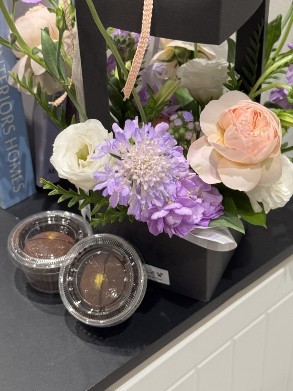 3. 전문 플로리스트가 디자인. 제작한 피치&연보라 톤의 생화 캐리어로,