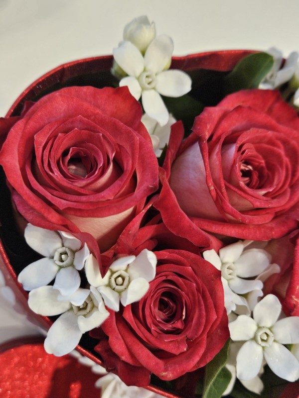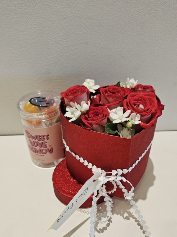 1. 그라데이션이 은은하게 번지는 장미꽃이 메인인 하트플라워박스입니다.