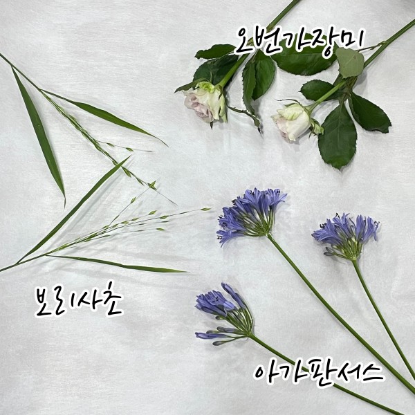 아가판서스와 오번가장미, 보리사초입니다.