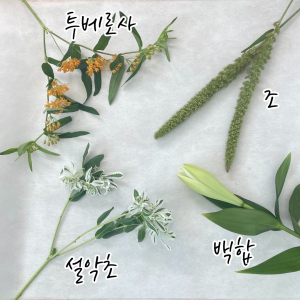 백합과 투베로사, 설악초, 조입니다.