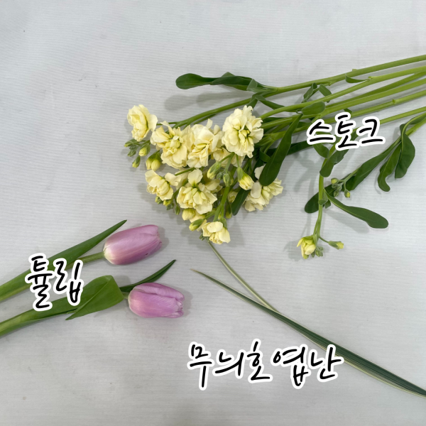 튤립, 스토크, 무늬호엽난 입니다.